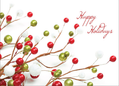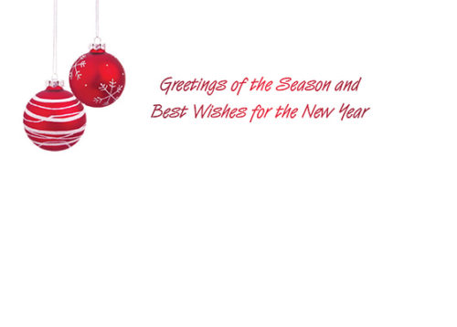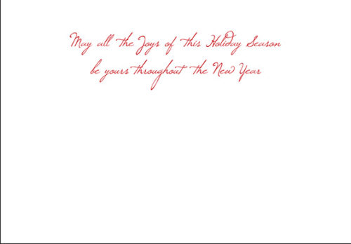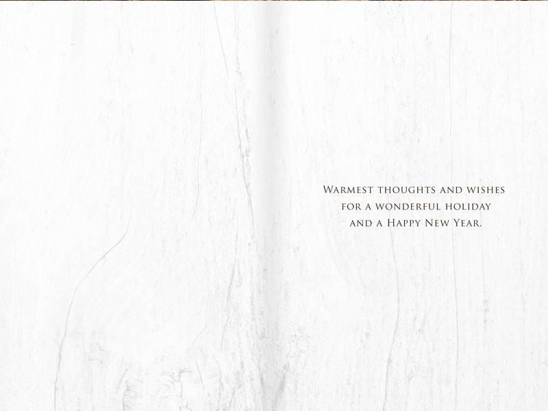 Standard Inside Verse: Warmest thoughts and wishes for a wonderful holiday and a Happy New Year. - Choose from several paper stocks at no additional charge