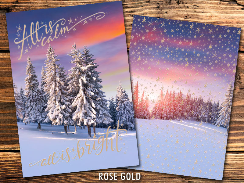 Serene Snowy Scene with Foil Overlay in 4 Colors