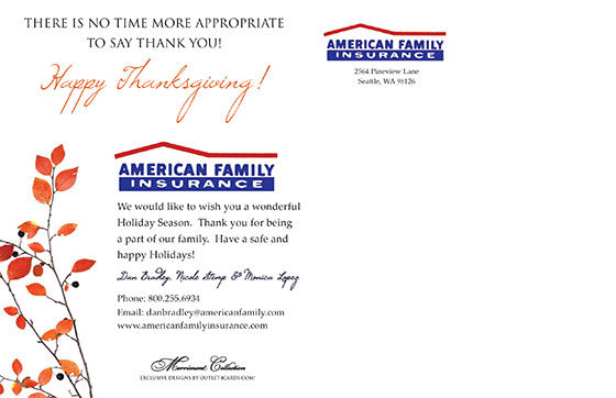 Standard Inside Verse: There is no time more appropriate to say thank you! Happy Thanksgiving! - Upload a photo or company logo to include on the inside