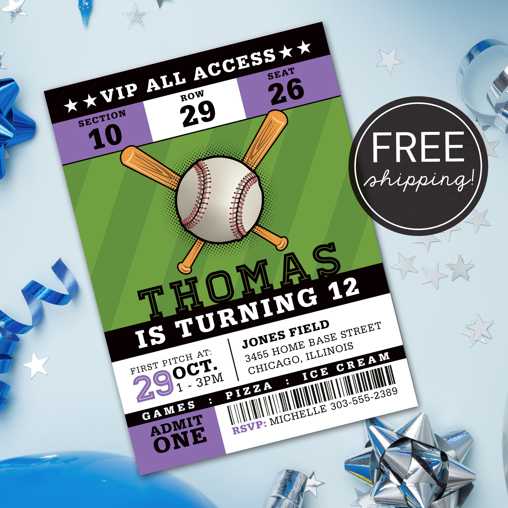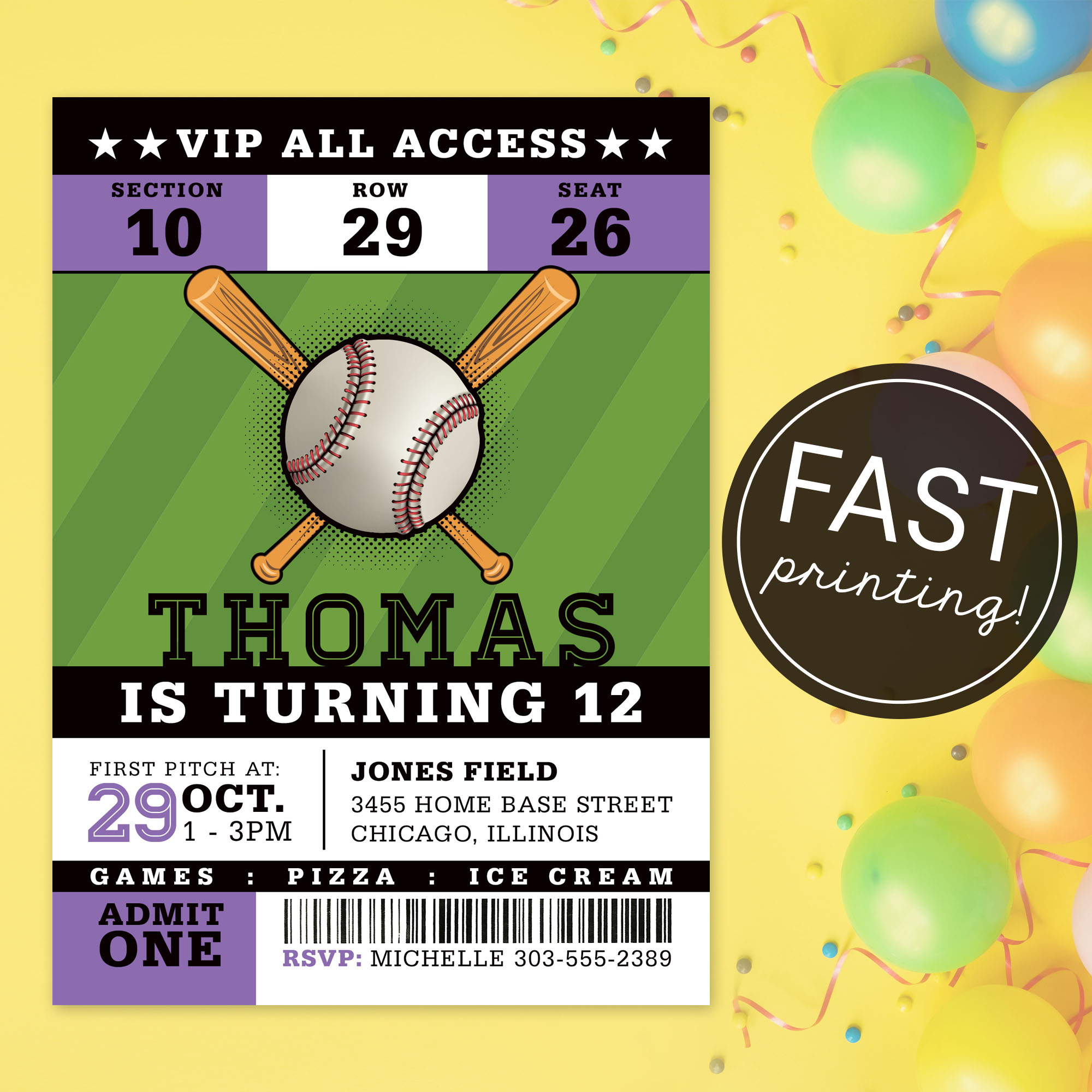 * DIY Online Editor: Use our custom online editor to easily add your event details and personalization to your Baseball Ticket Invitation card. Our design team is here to assist you every step of the way if you have any questions. Try a demo of our online editor: https://www.corjl.com/d/Qiy3fK