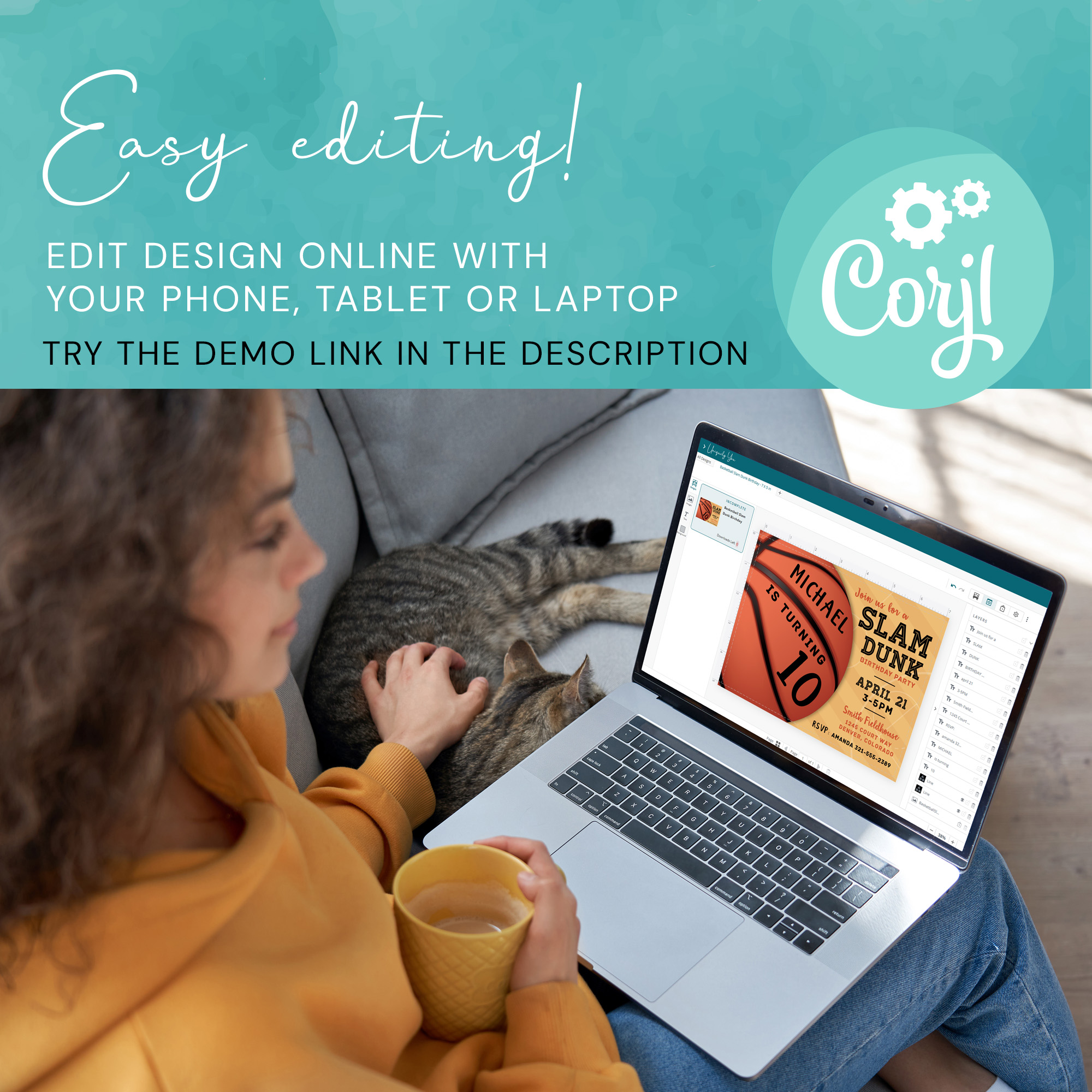 Design can be fully edited using Corjl – a free template editor that allows you to quickly and easily personalize our digital templates. Template can be edited on a computer, tablet or phone.