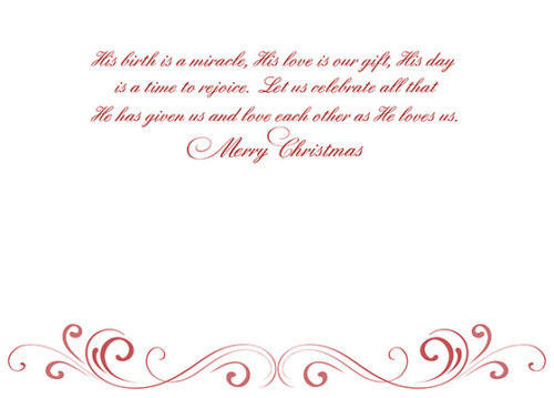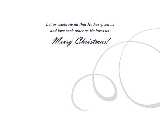 Standard Inside Verse: Let us celebrate all that He has given us and love each other as He loves us. Merry Christmas! - Upload a photo or company logo to include on the inside