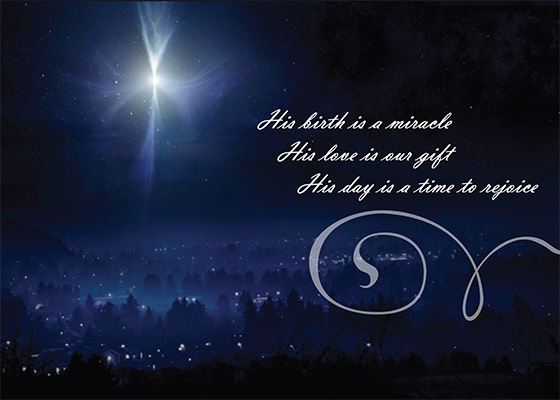 Bethlehem Star holiday card features the Bethlehem Star shining peacefully over Bethlehem creating a beautiful scene.