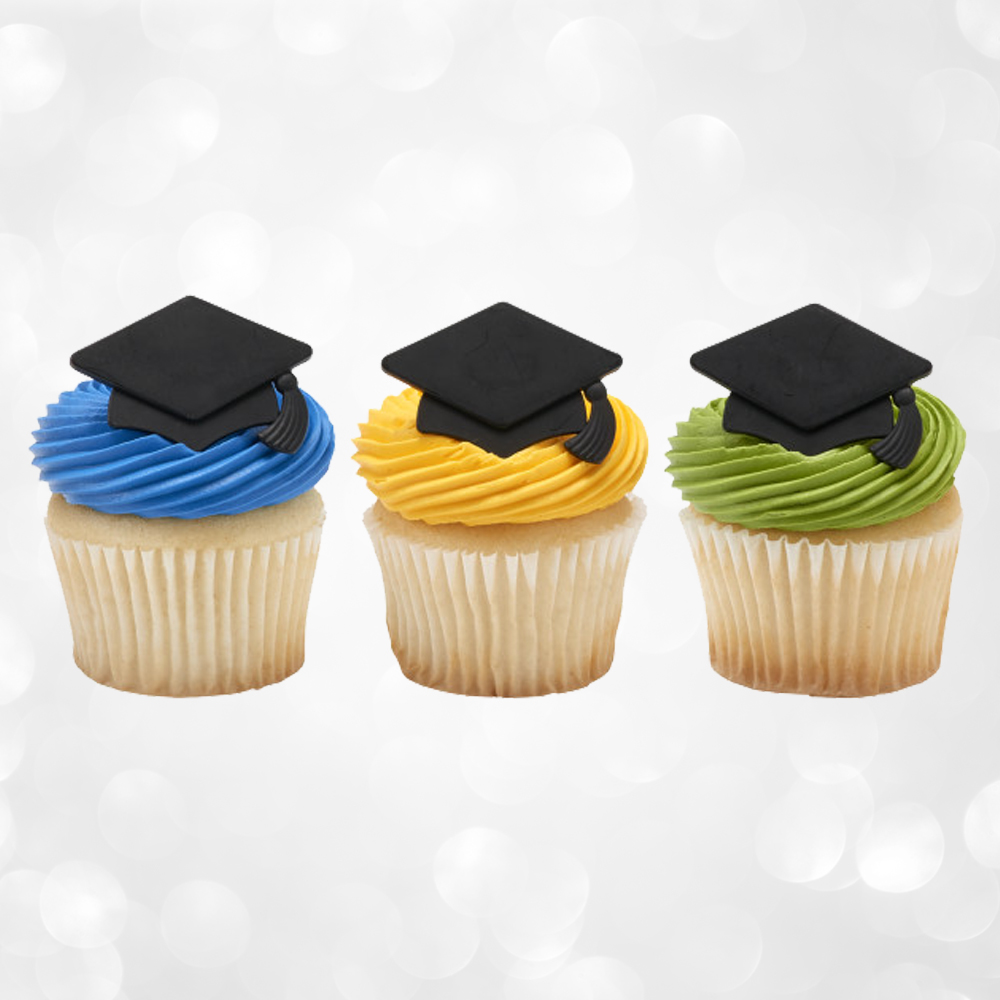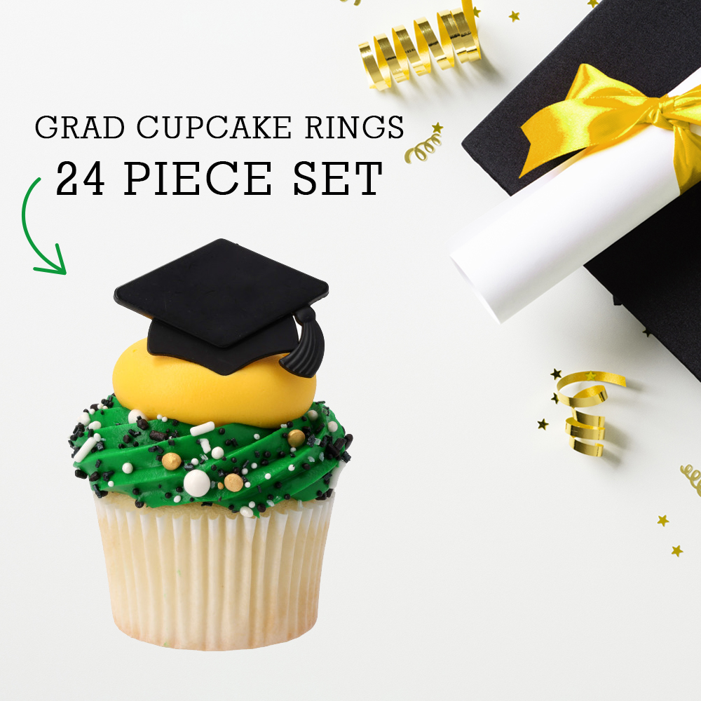 Elevate your graduation cupcakes with black grad cap cupcake rings. These versatile toppers can be used in dessert or tablescape design for any celebration, creating a cute accent that honors this special achievement.