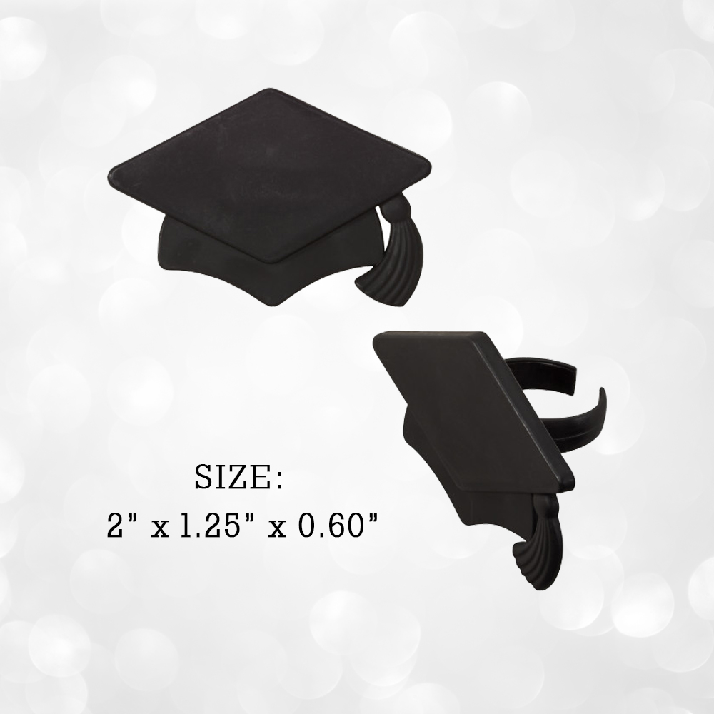 * Black Grad Cap Cupcake Rings: 2 x 1.25 x 0.60 inches (Material: Plastic)