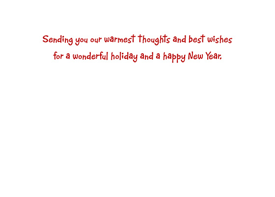 Standard Inside Verse: Sending our warmest thoughts and best wishes for a wonderful holiday and a happy New Year. - Upload a photo or company logo to include on the inside