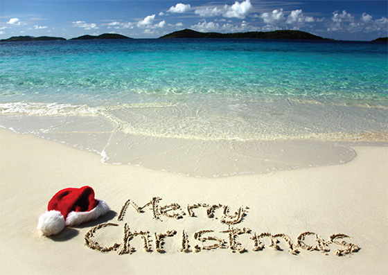The Christmas At The Beach Holiday card will have those in snowy places wishing for some fun in the sun.