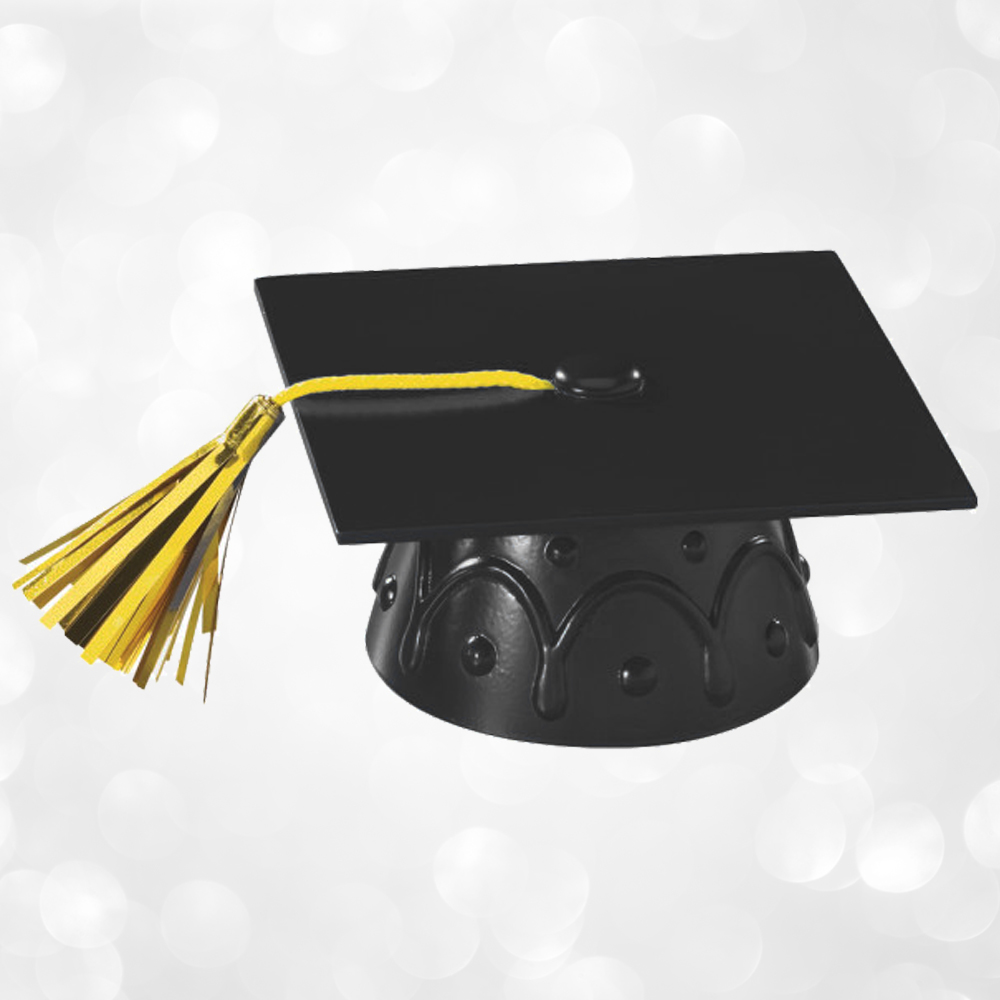 * Black Grad Cap with Gold Tassel: 3x3x1.5 inches (Material: Plastic)