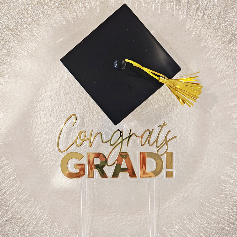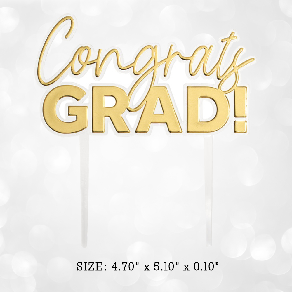 * Gold Congrats Grad Vertical Cake Topper: 4.70×5.10×0.10 Inches (Material: Plastic)
