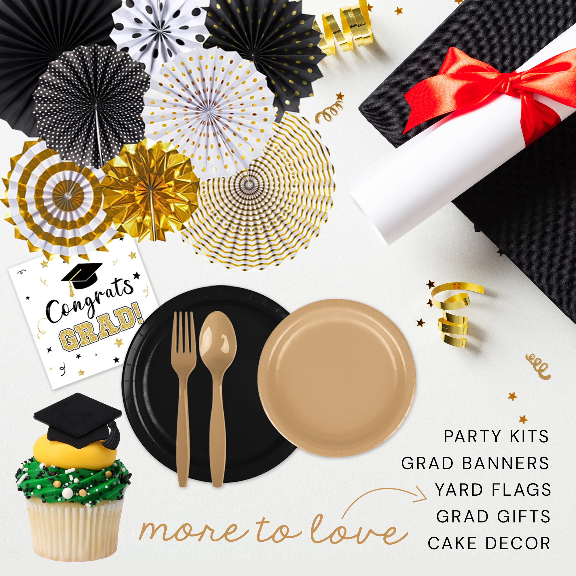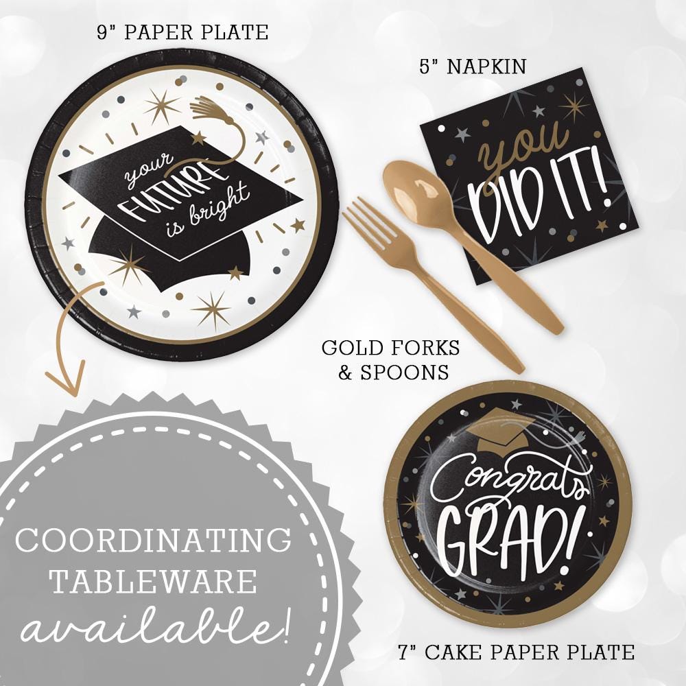 * Gold & Black Tableware & Decor Party Bundle: https://uniquelyyoucollection.com/graduation-party-kits/