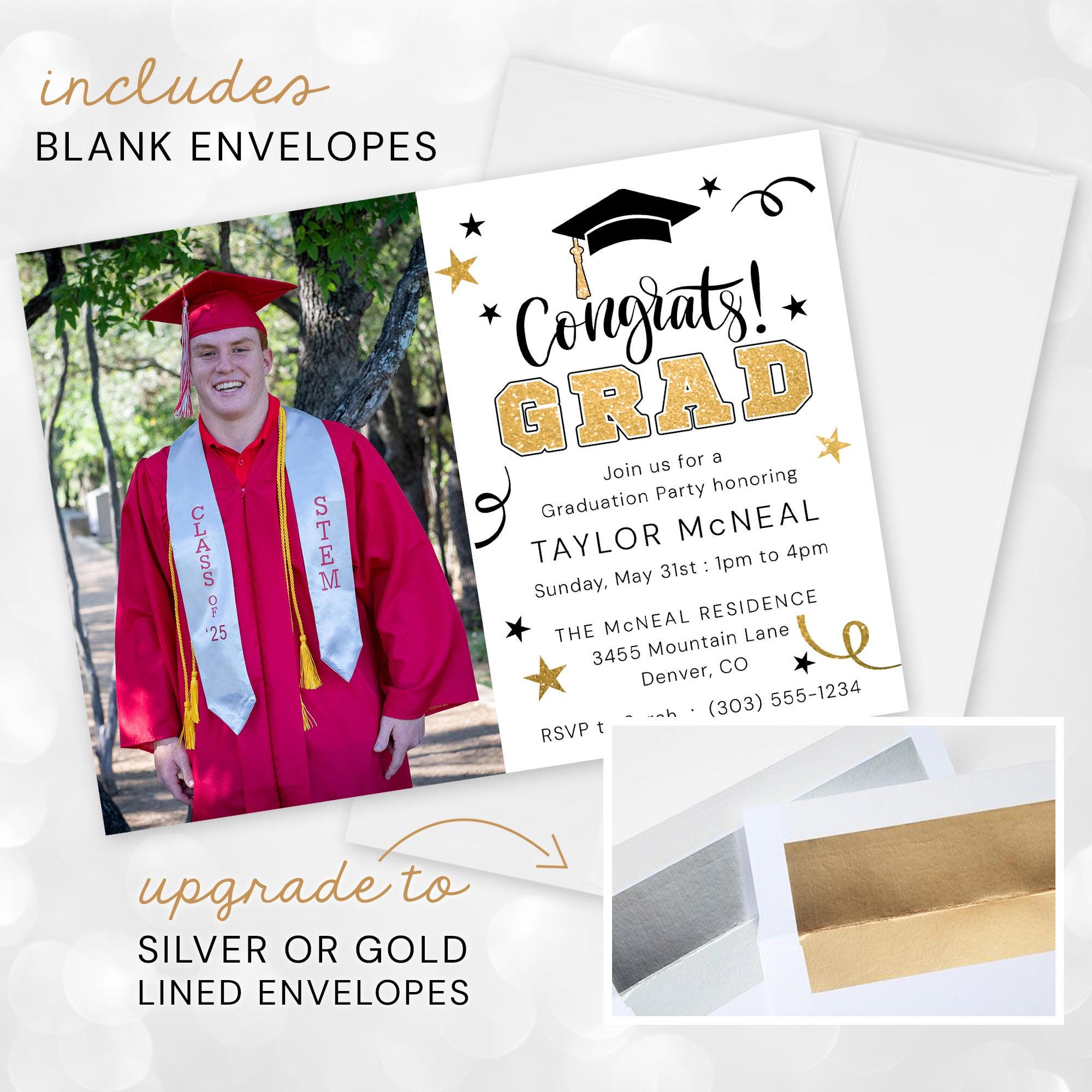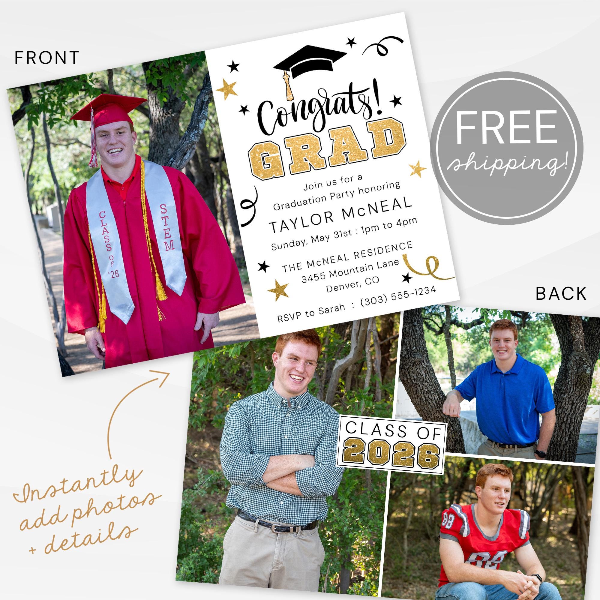 🌟 Fully customizable text options to personalize your invitations for the class of 2026