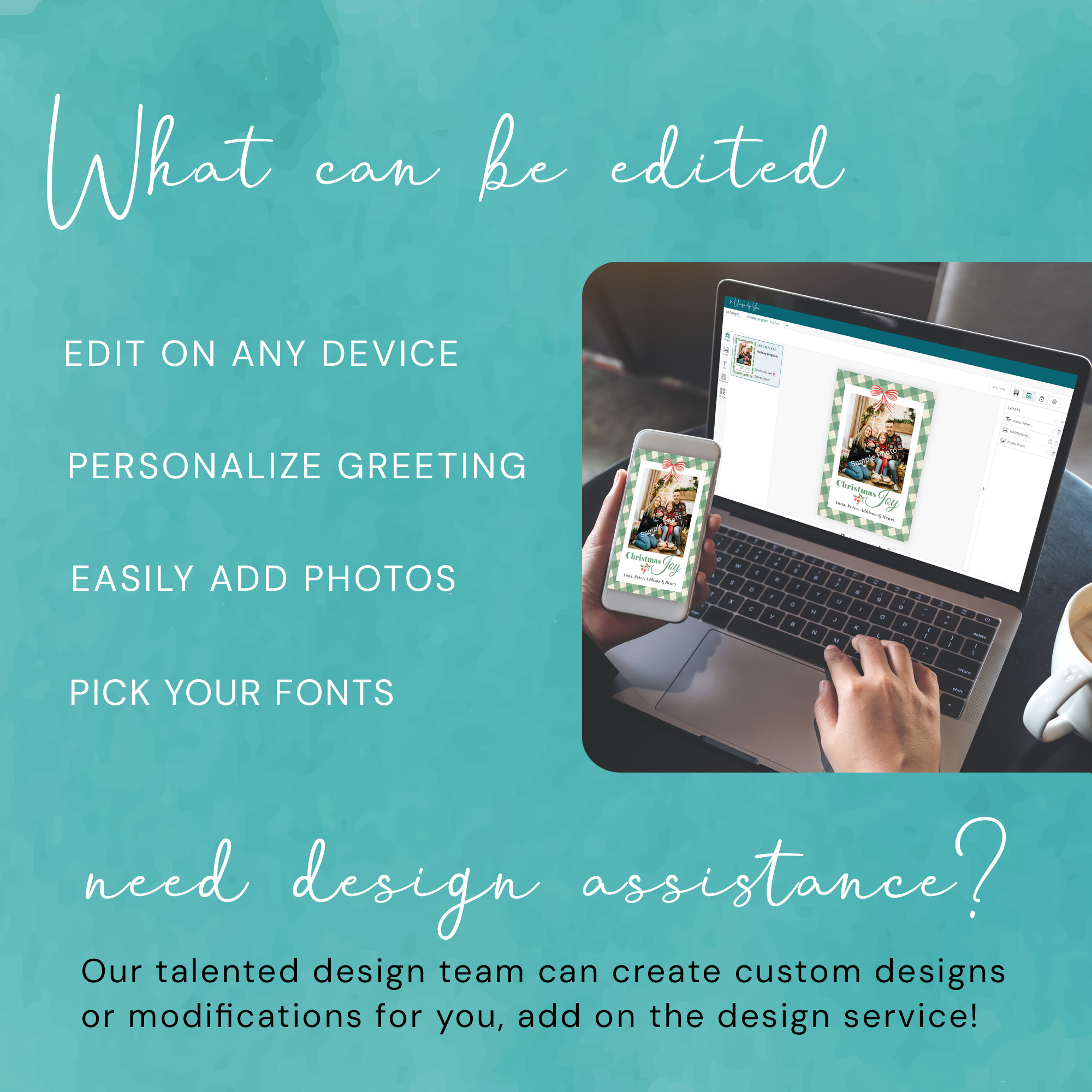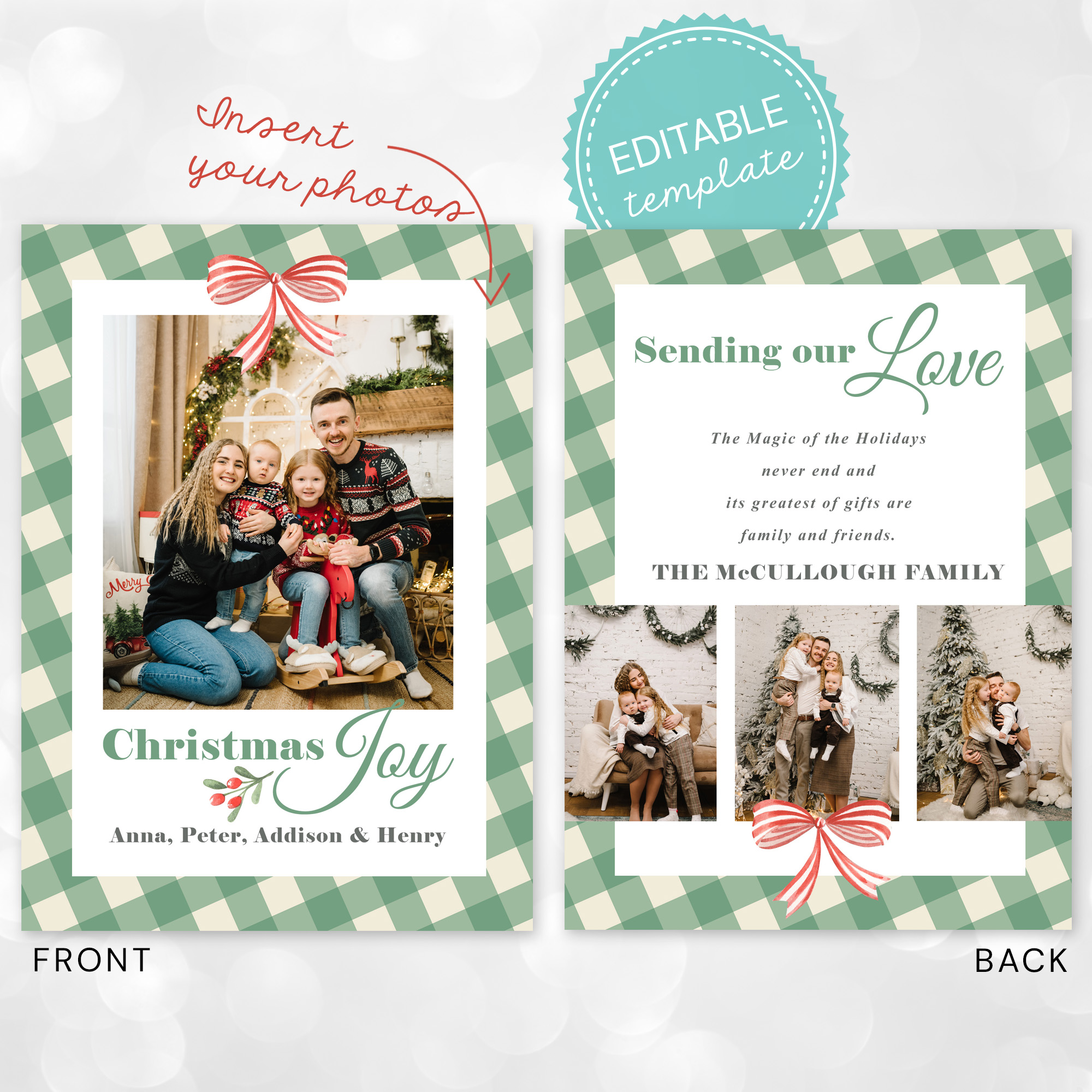 Use our Canva Template Here: https://designsbyuniquelyyou.etsy.com/listing/4384700605/gingham-canva-christmas-photo-card