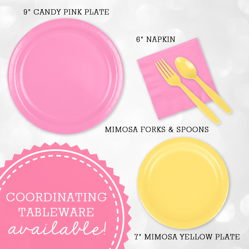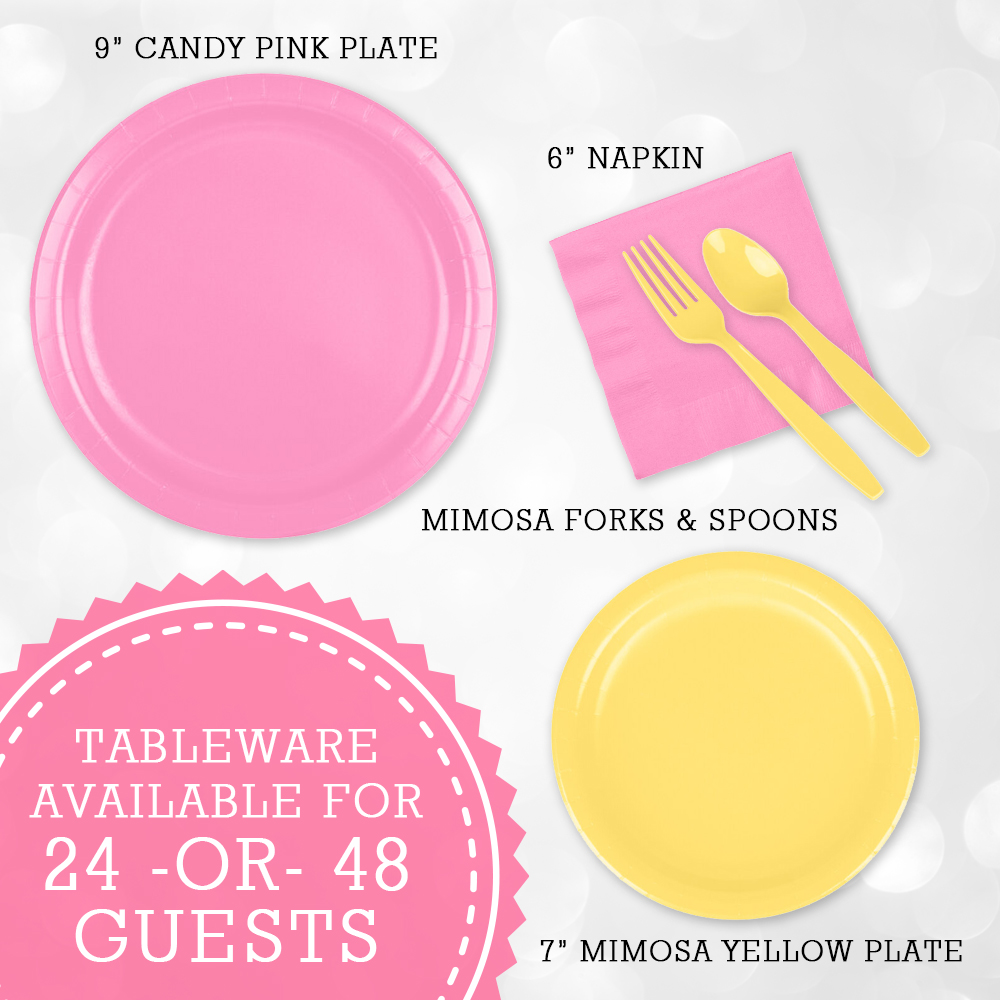 * Coordinating Mimosa & Candy Pink Tableware Bundle:Β https://uniquelyyoucollection.com/product/pink-yellow-tableware-set-24-guests-celebration-shower-birthday-party-set/https://designsbyuniquelyyou.etsy.com/listing/1887927685