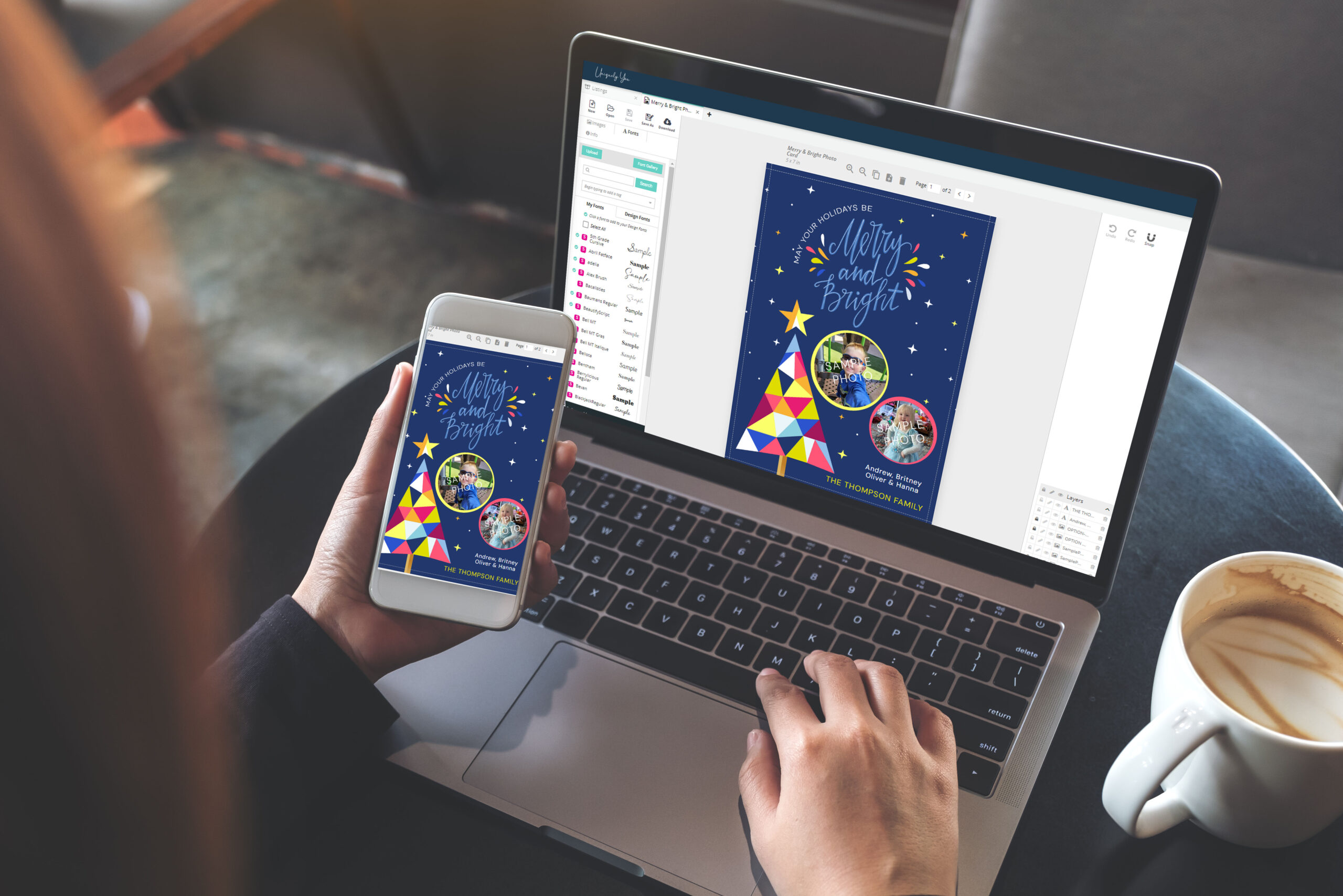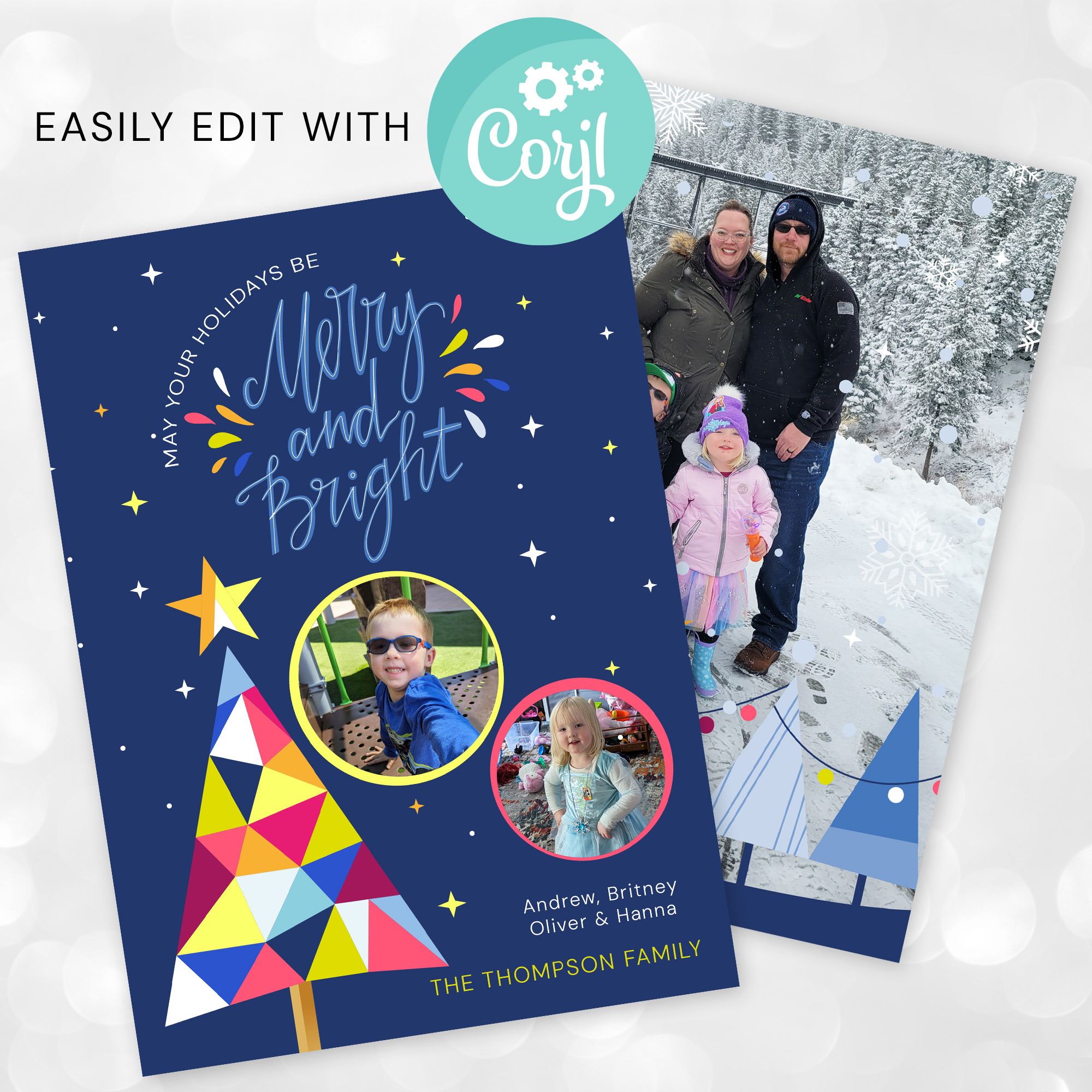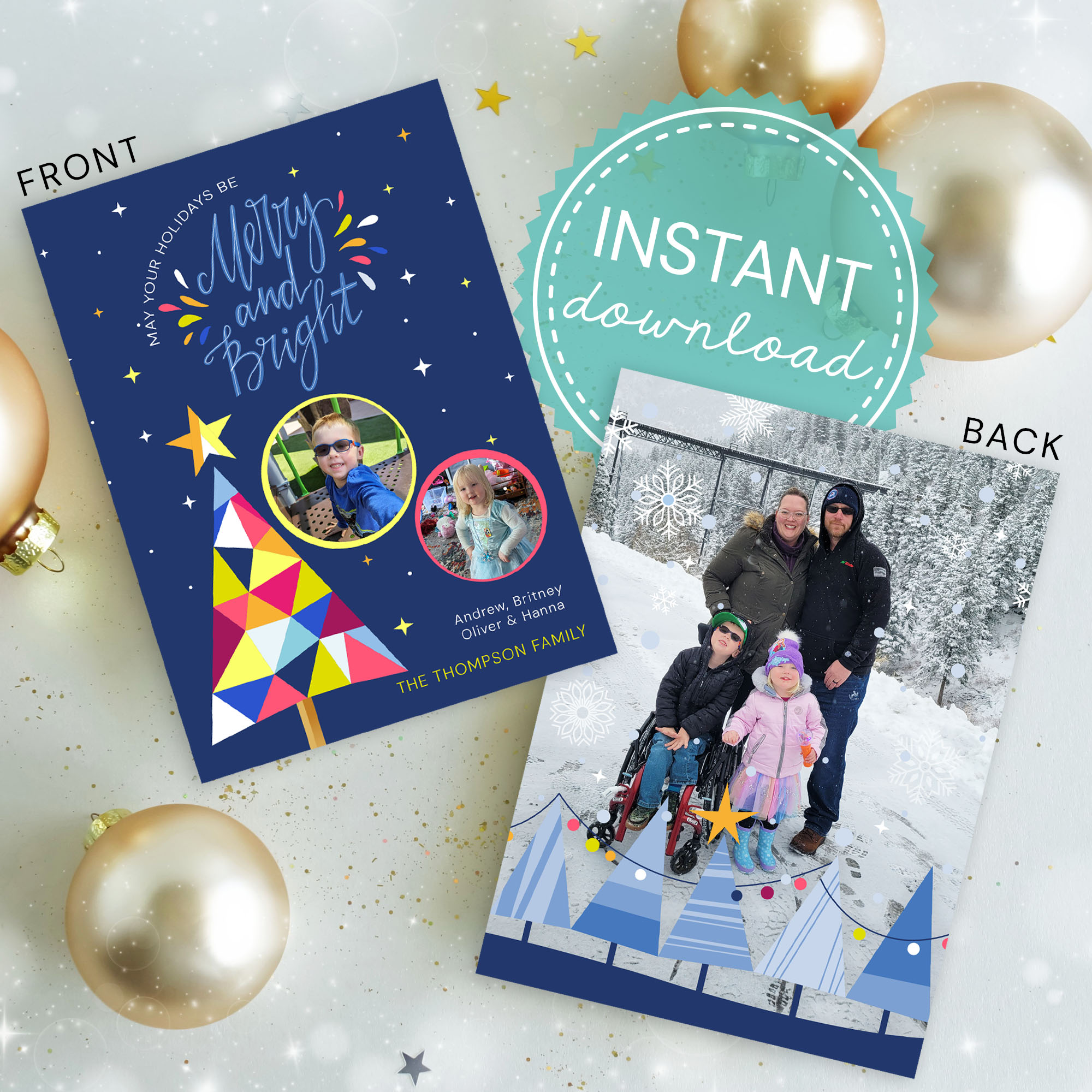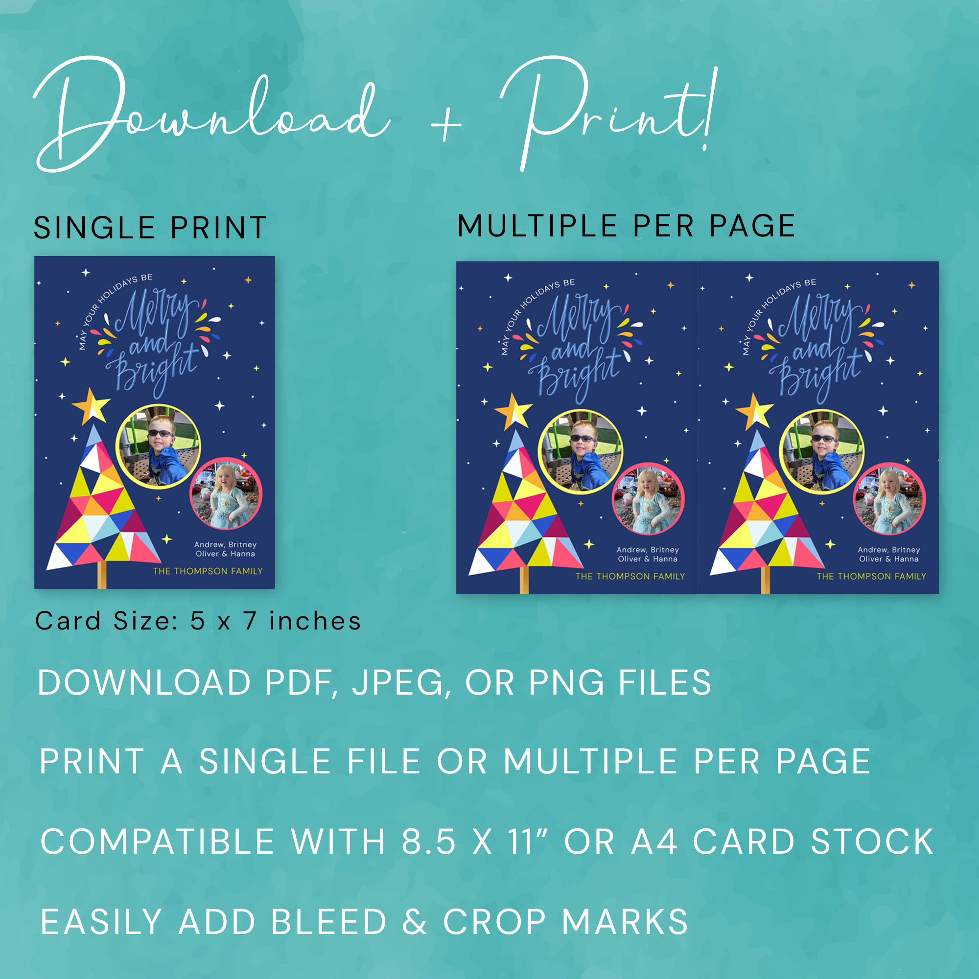 Get your Holiday Family Photo Card with our Merry and Bright Holiday Photo Greeting, available as an instant download. This editable photo card template is the perfect Family Christmas card to send to your family and friends.