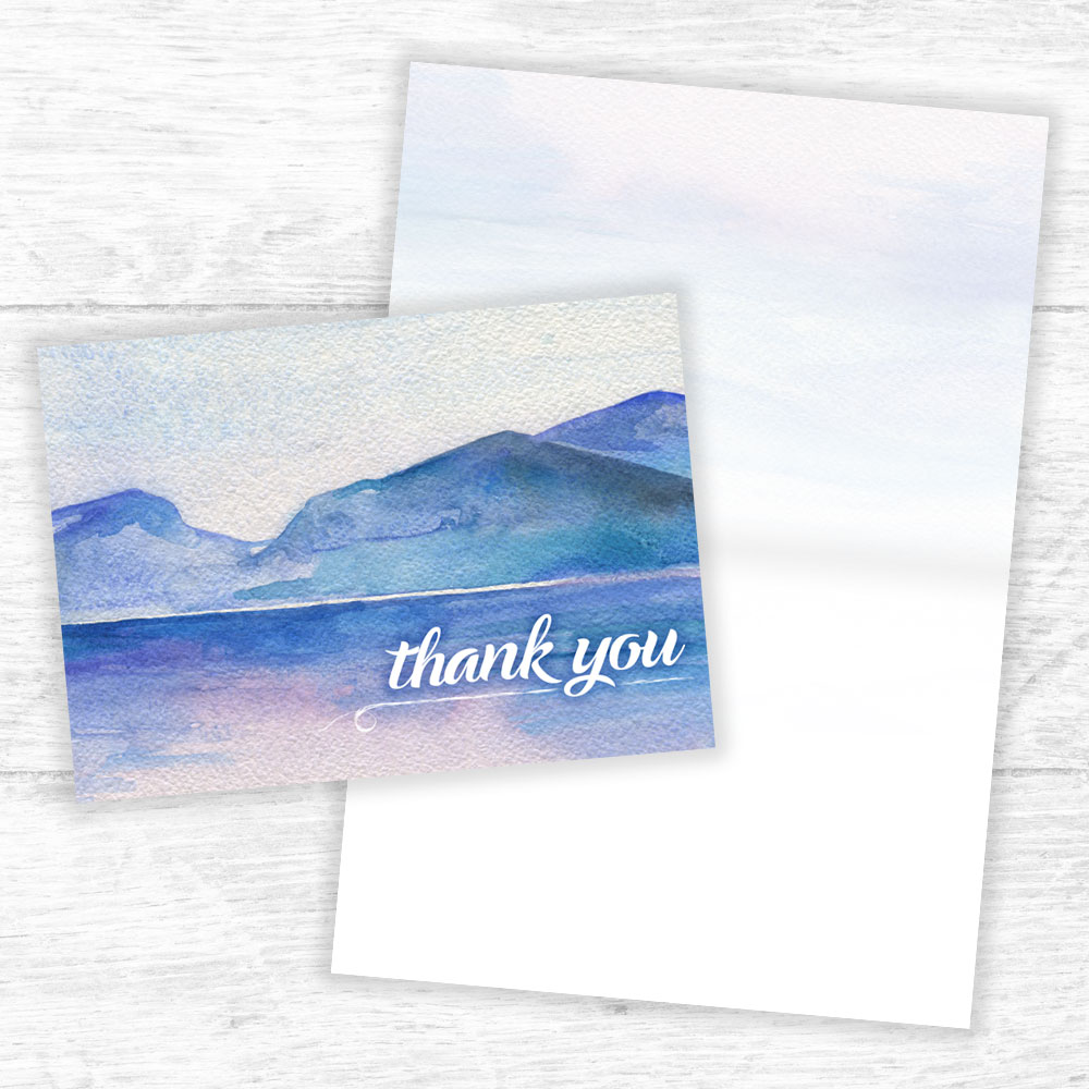 This naturally stunning mountain watercolor notecard is the perfect place to reflect and express your gratitude.  With it’s sophisticated shades of blue and tranquil scene, your expressions will be beautifully presented.