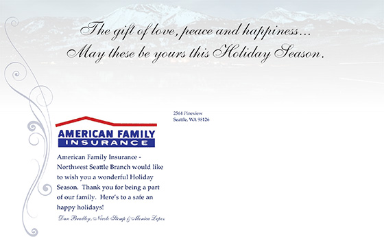Standard Inside Verse: The gift of love, peace and happiness…May these be yours this Holiday Season. - Upload a photo or company logo to include on the inside