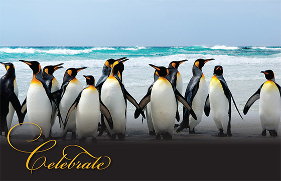 The Penguins Celebrate Greetings Holiday Postcard will help your friends and family celebrate the good times and special moments this Holiday Season.