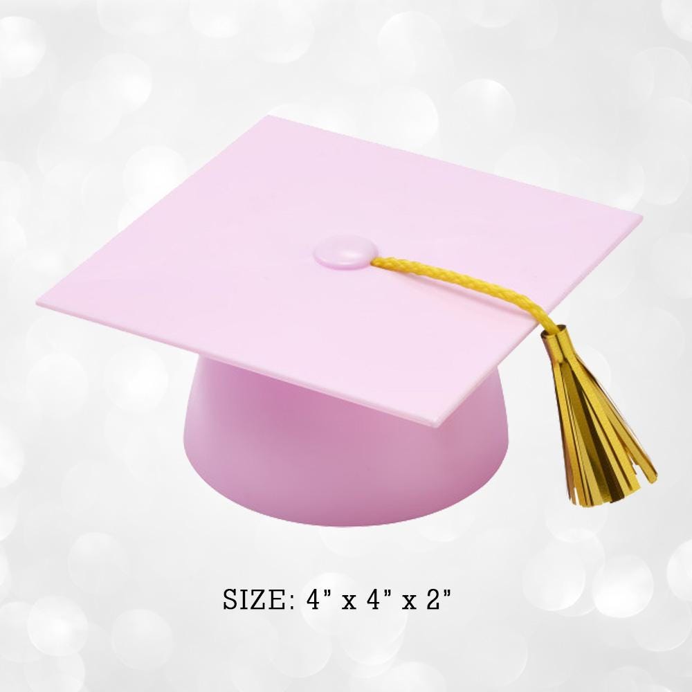 * Pink Grad Cap Topper with Gold Tassel: 4 x 4 x 2 inches (Material: Plastic)