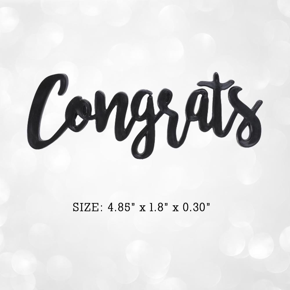 * Black Script Congrats Cake Sign: 4.85 x 1.8. x 0.30 (Material: Plastic)