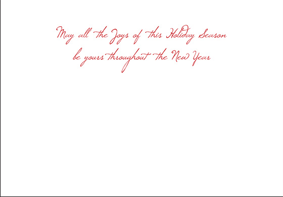 Standard Inside Verse: May all the Joys of This Holiday Season be yours throughout the New Year. - Upload a photo or company logo to include on the inside