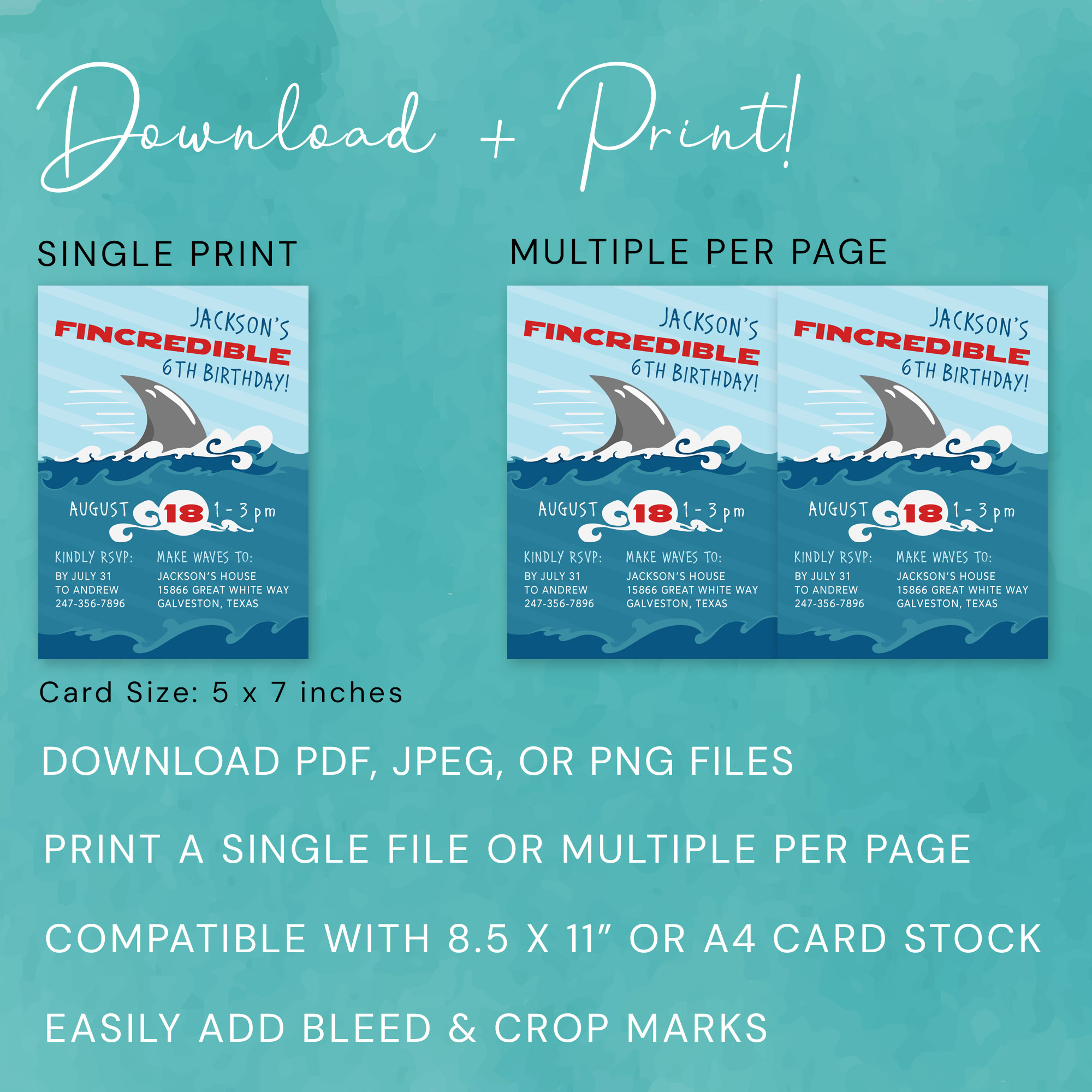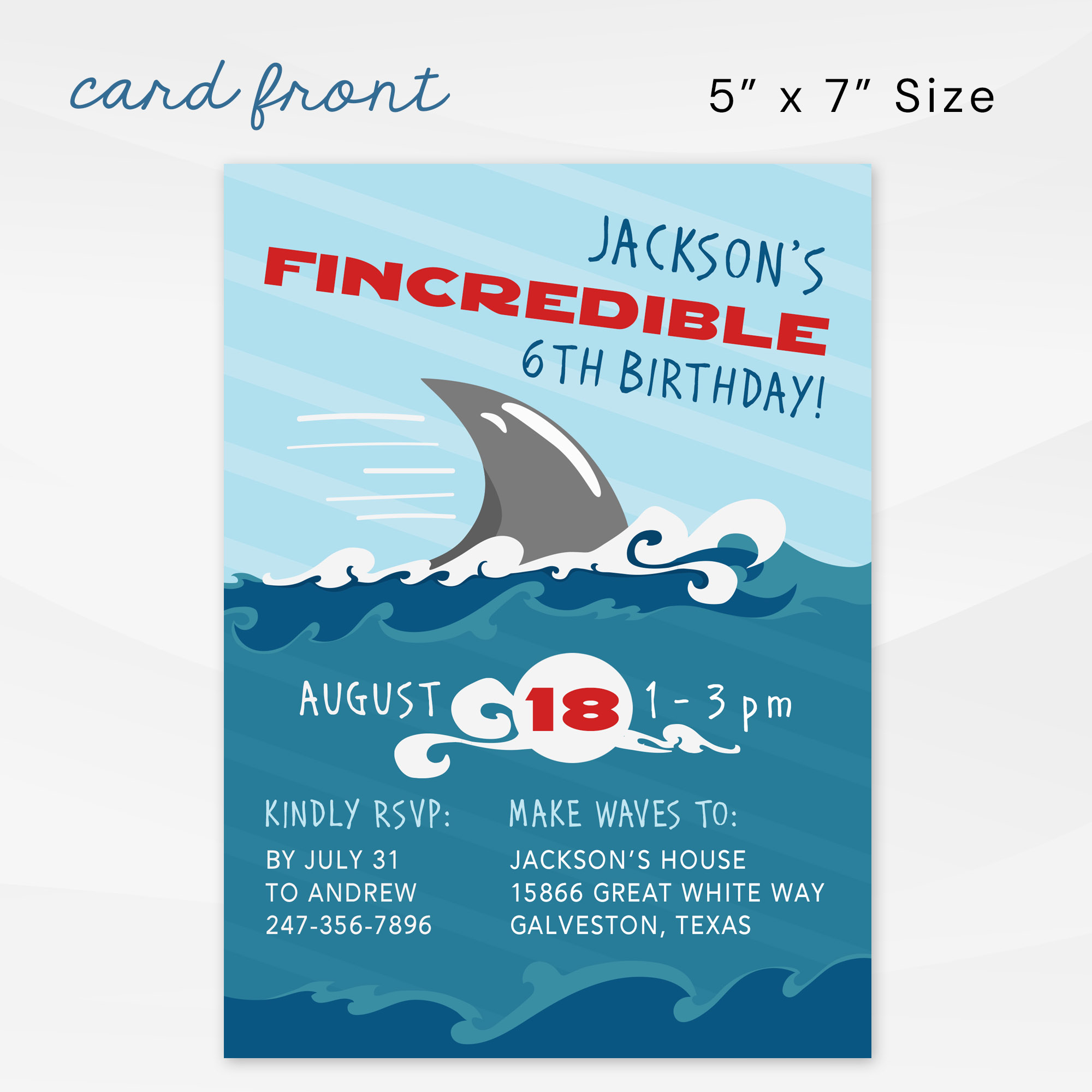 ➡️ Fincredible Shark Invitation Card Size: 5×7 inches