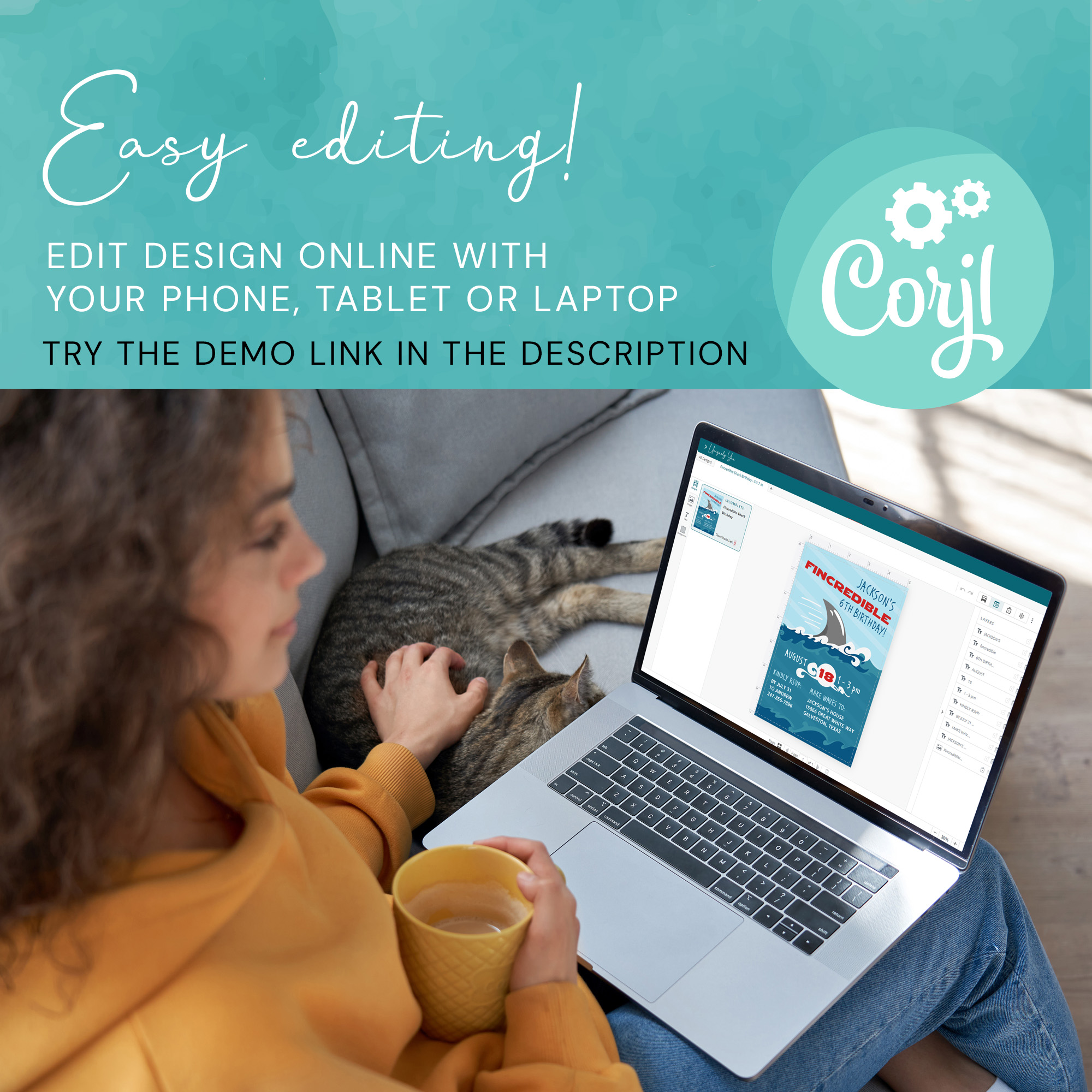Design can be fully edited using Corjl – a free template editor that allows you to quickly and easily personalize our digital templates. Template can be edited on a computer, tablet or phone.