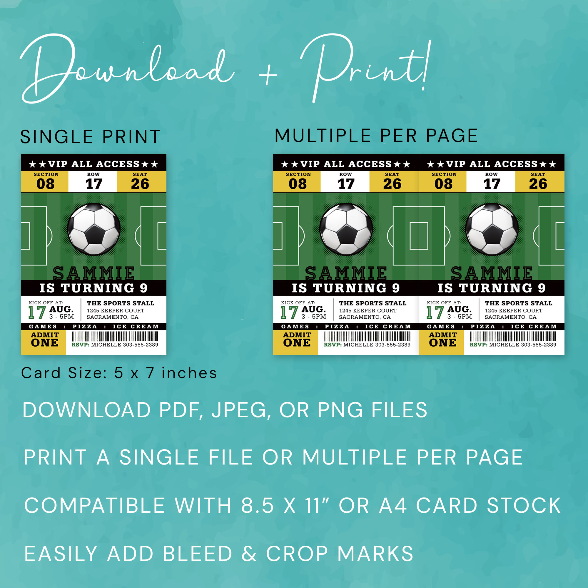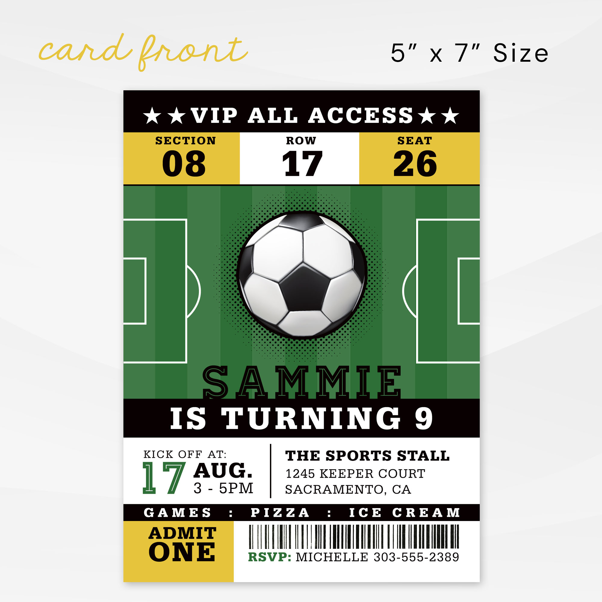 ➡️ Soccer Game Ticket Invitation Card Size: 5×7 inches