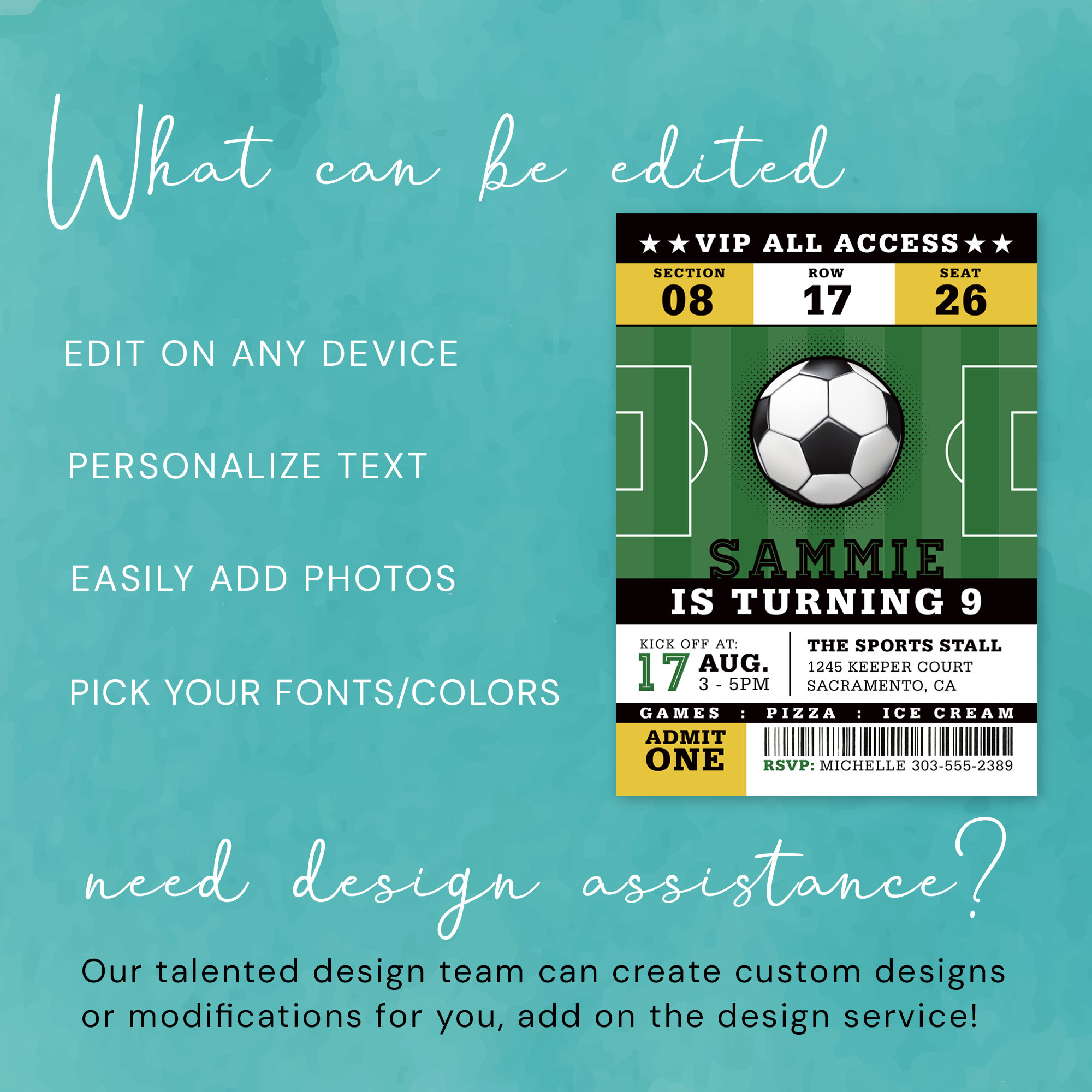 ⚽Customizable Soccer Ticket Invitation⚽