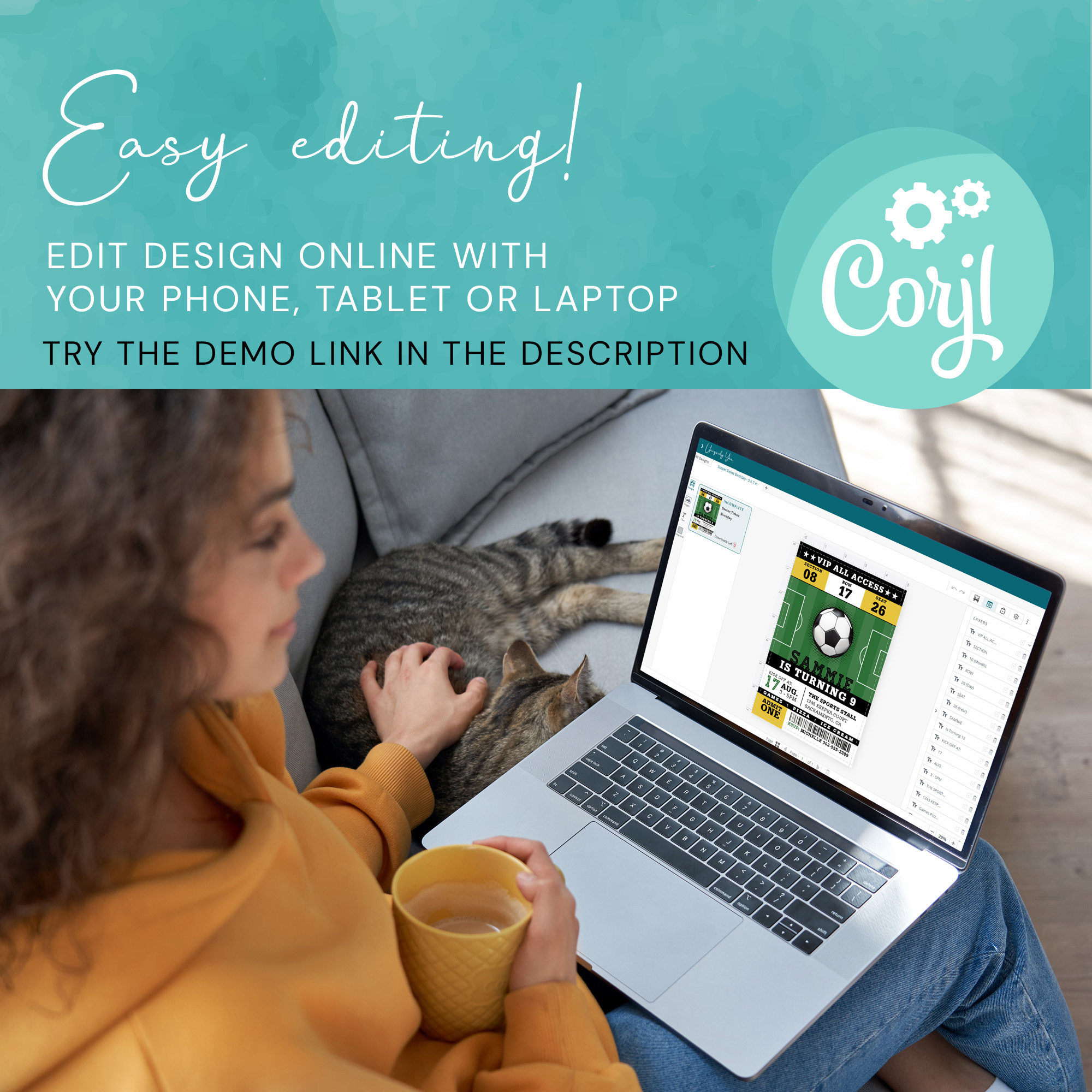 Design can be fully edited using Corjl – a free template editor that allows you to quickly and easily personalize our digital templates. Template can be edited on a computer, tablet or phone.