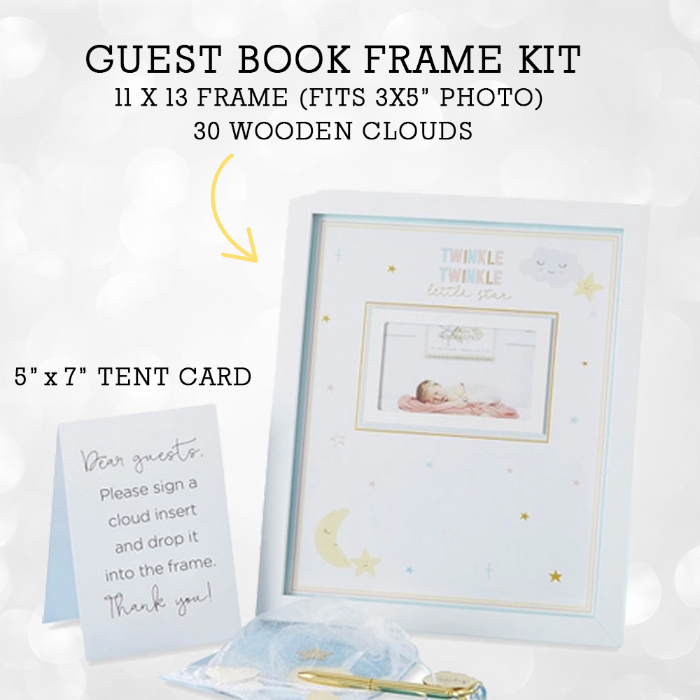 * Frame Guest Book with 30 Wooden Clouds: 1 Qty (Fits 3″ x5″ Photo, Frame is 11″ x13″, Clouds are 1.6″ x 1.4″)