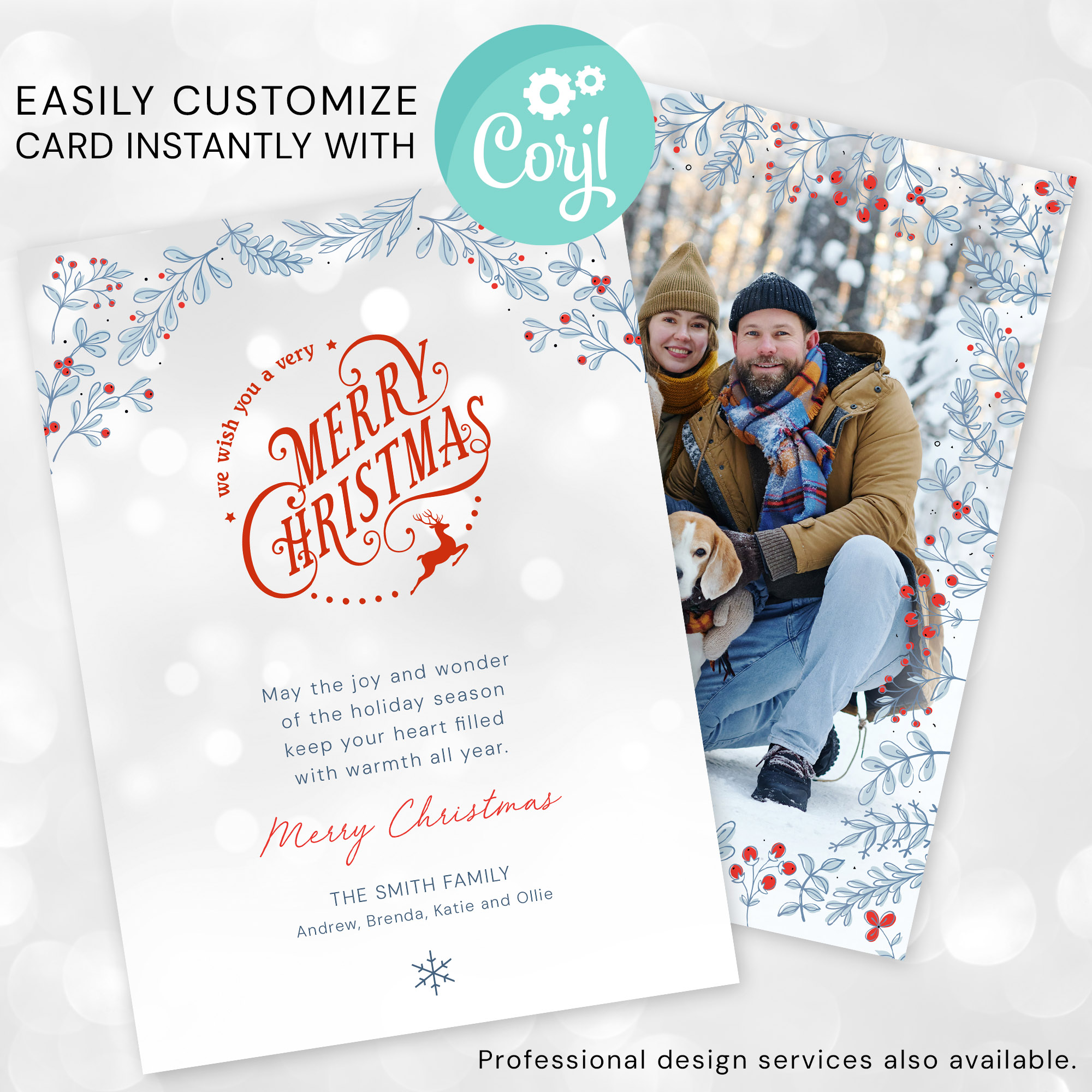 - Let our professional design staff customize the card for you. We will email you to request your photos and customizations, and send you a proof within 2 business days.