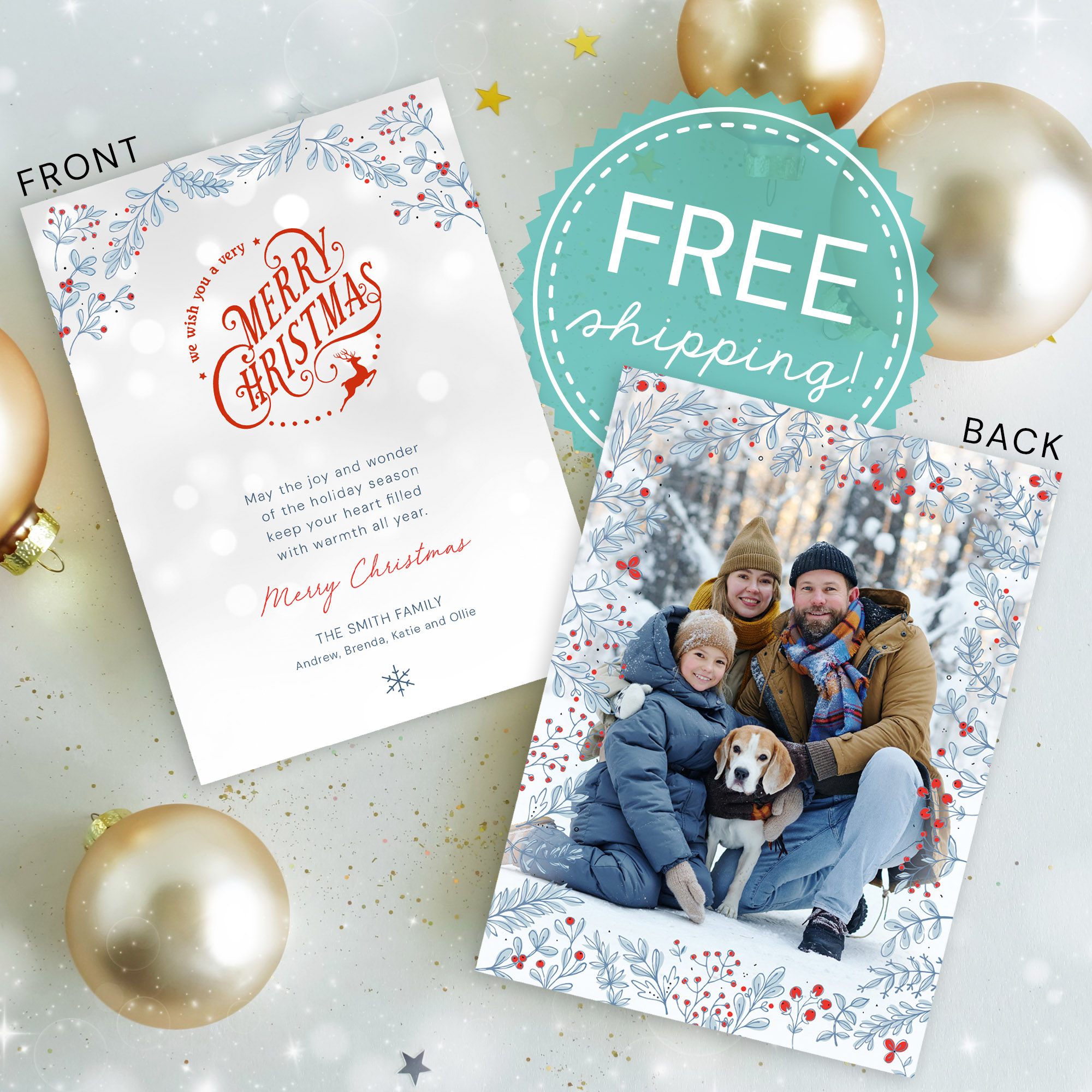Photo Card Size: 5×7 inches (flat card, no fold)