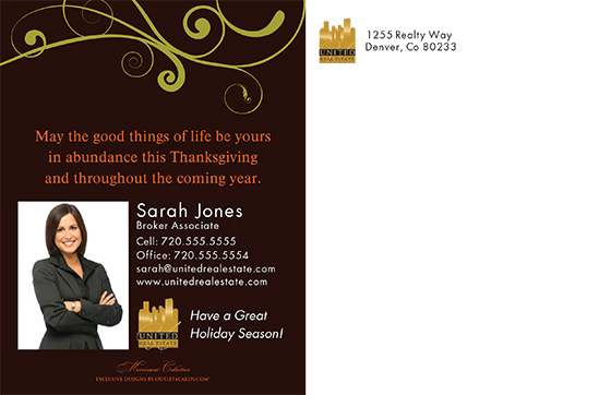 Standard Inside Verse: May the good things of life be yours in abundance this Thanksgiving and throughout the coming year. - Upload a photo or company logo to include on the inside