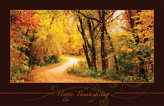 The Winding Path Holiday Postcard is a peaceful snapshot of the beauty that surrounds us and is something to be thankful for.