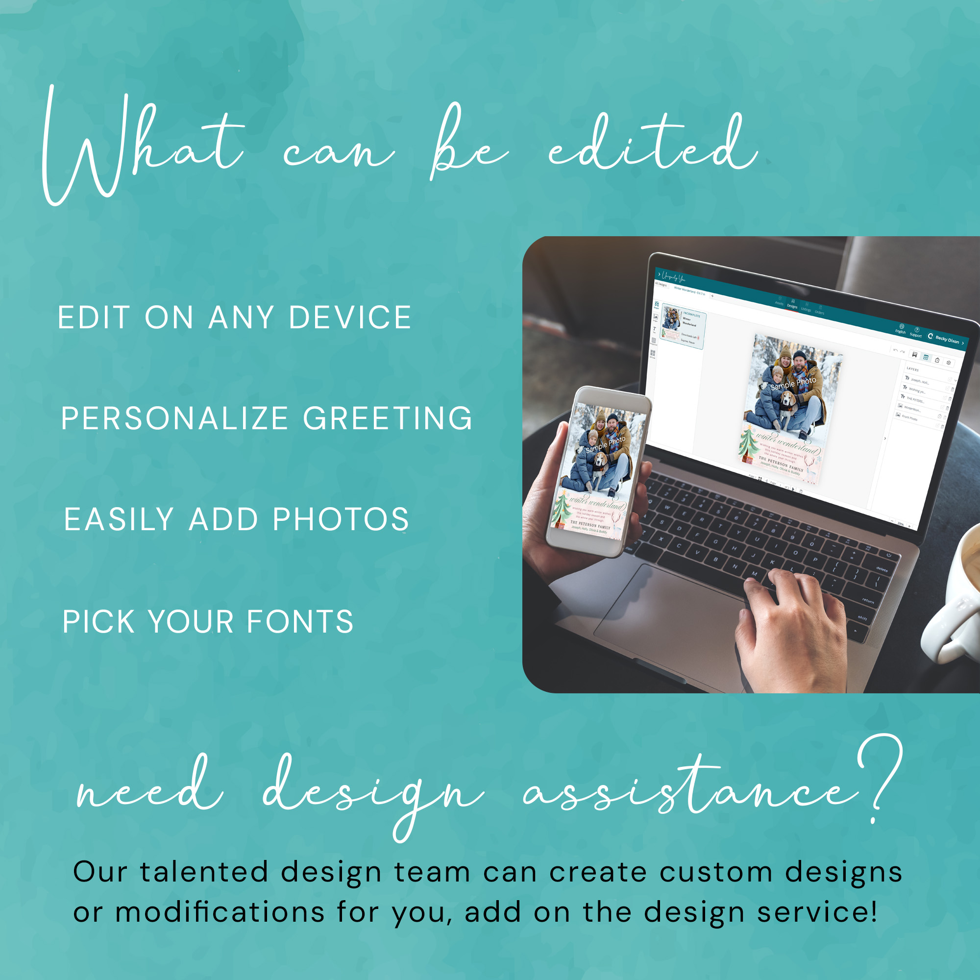 🎄 Double-sided layout with space for your family portrait and personalized holiday greeting
