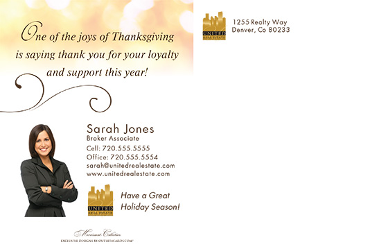 Standard Inside Verse: One of the joys of Thanksgiving is saying thank you for your loyalty and support this year! - Upload a photo or company logo to include on the inside