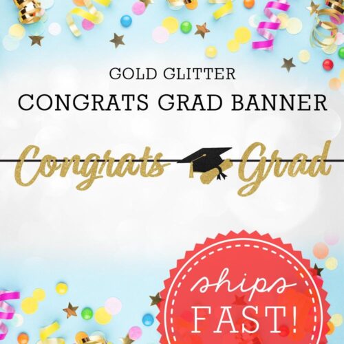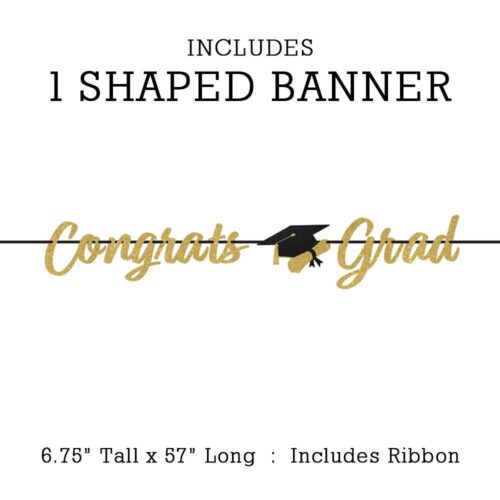 Gold Glitter Congrats Grad Banner, Class of 2026 Party Supplies, Graduation Party Decorations